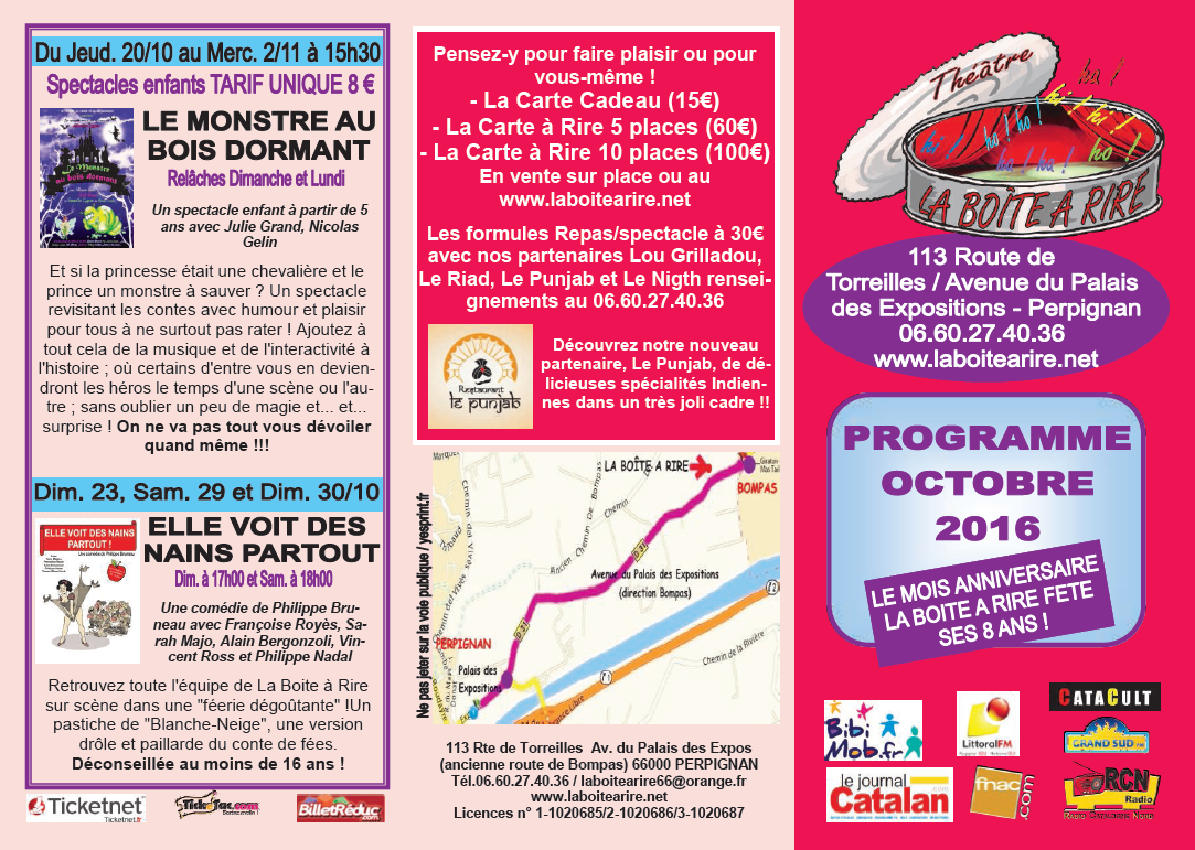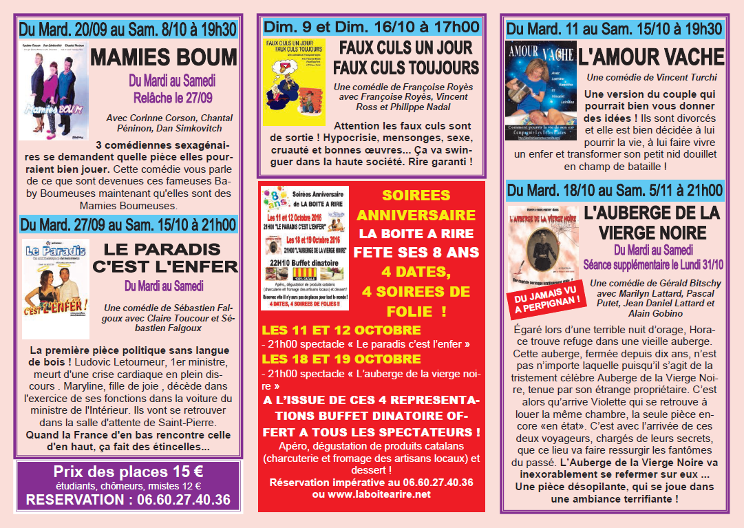 Le café-théâtre La boîte à rire vous a préparé de quoi passer de franches soirées de rigolades pour le mois d’octobre … à savourer en famille ou en entre amis.