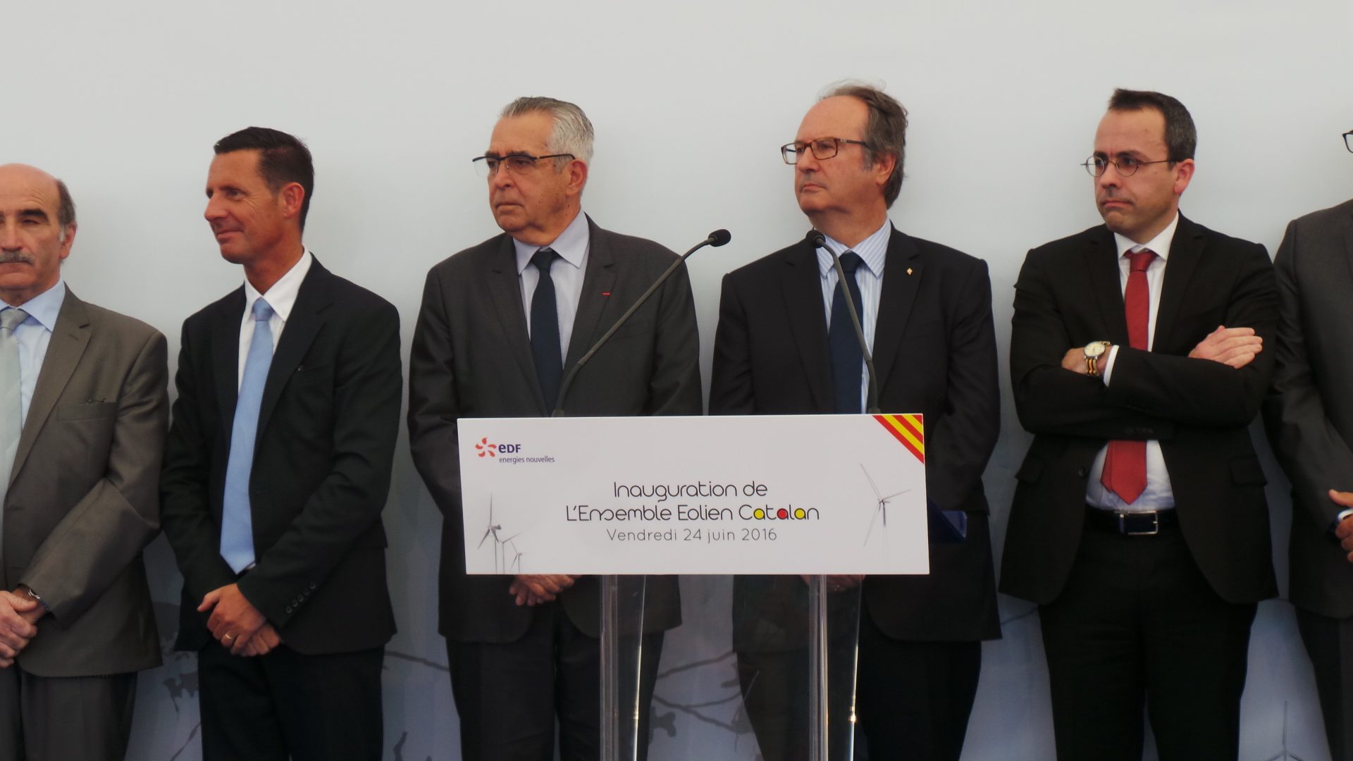 Ce parc éolien d’envergure a donc été inauguré aujourd’hui par Jean-Bernard Lévy, Président Directeur Général du Groupe Edf, et Antoine Cahuzac, Directeur Exécutif du Groupe Edf en charge du Pôle Energies Renouvelables et Directeur Général d’Edf Energies Nouvelles, aux côtés du maire de Perpignan, Jean-Marc Pujol, président de la communauté urbaine (CU) Perpignan Méditerranée Métropole, Dominique Schemla, vice-président de la CU en charge du Développement Durable et des Energies Renouvelables (EnR), François Calvet, sénateur-maire de Le Soler et 1er vice-président de la CU,