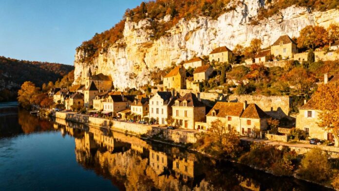 Le soleil décline derrière la falaise calcaire. Les dernières lueurs embrasent les toits de lauze. La Dordogne reflète une dernière fois ce village vertical où 450 habitants défient chaque jour la gravité.