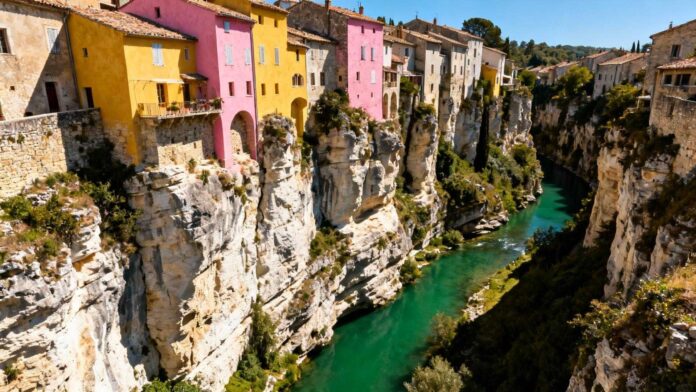 Le premier regard saisit immédiatement. Les façades ocre, rose et jaune s’accrochent à la falaise calcaire. Leurs balcons en saillie dominent le vide depuis 450 ans.