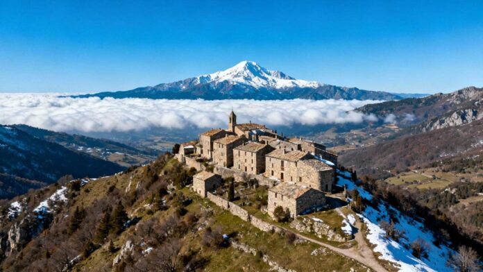 Le Conflent concentre sept abbayes et prieurés romans dans un rayon de quinze kilomètres autour de Prades. Cette densité architecturale médiévale unique en France prend une dimension surréaliste quand les édifices millénaires dominent l’océan nuageux. Mosset à 720 mètres permet d’observer le phénomène depuis un village montagnard authentique où les traditions catalanes restent vivantes.