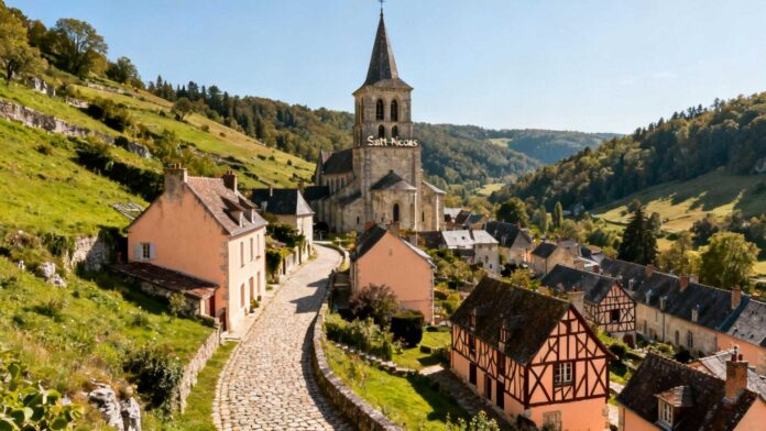 L’arrivée dans la vallée du Bec, entre Brionne et Bernay, saisit immédiatement. Les maisons à colombages colorées annoncent le village niché à 50 mètres d’altitude. La géographie particulière de cette vallée encaissée crée une atmosphère de recueillement naturel.