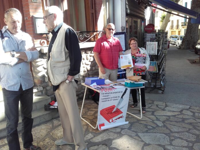 En ce vendredi 17 juin, dés le petit matin, sur la place du village, des militants CGT proposaient aux citoyens de se prononcer pour ou contre la loi El Khomri. Une démarche, il nous semble, positive. En effet, chacun aura pu ainsi se déterminer, donner son avis ou ne rien dire. Un sondage dans la réalité la plus proche des gens.