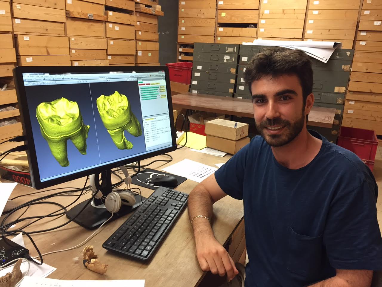 Gael Becam en dernière année de doctorat à l’université de Perpignan sous la direction de Sophie Grégoire. « Je suis particulièrement heureux de cette découverte, je travaille sur l’évolution de la dentition entre l’homme moderne et l’homme de Neandertal. Grâce à de nouvelles techniques de scanner à rayon X très sophistiquées nous pouvons faire un modèle 3 D des fossiles et de l’anatomie cachée et ainsi pouvoir vraiment comparer les dents. Cela nous apporte des indications sur l’évolution et notamment les caractéristiques génétiques des individus ».
