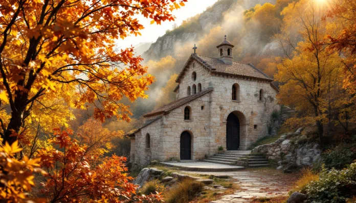 L’automne 2024 offre des conditions optimales : température agréable en altitude, couleurs flamboyantes de la forêt mixte et affluence réduite. Le petit cimetière du côté nord de l’ermitage et le patio ombragé d’arbres touffus invitent à la contemplation. Comme les espaces protégés de Casteil au pied du Canigó, ce site demande respect et discrétion.