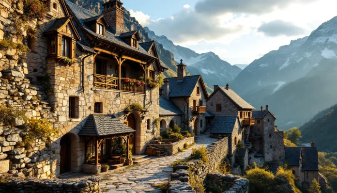 Évol révèle une harmonie chromatique unique entre ses murs gris-brun et ses couvertures d’ardoise locale. Cette cohérence matérielle, classée « Plus Beaux Villages de France » depuis 2003, constitue un cas d’étude fascinant pour comprendre l’adaptation pyrénéenne millénaire.