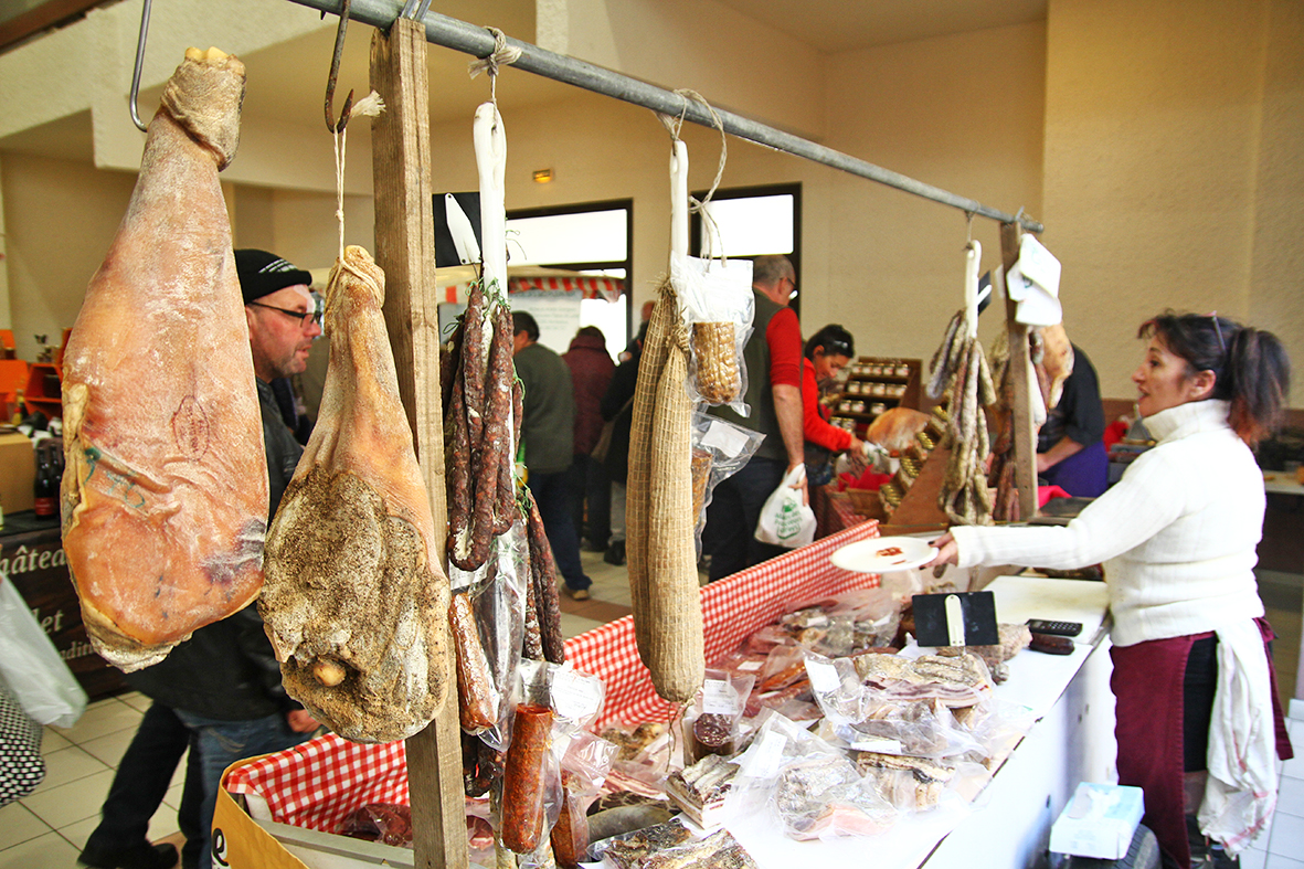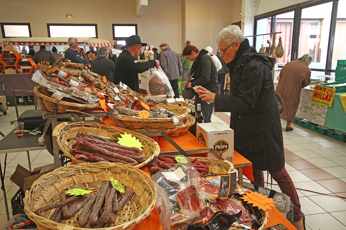 Les artisans charcutiers catalans et audois proposaient toutes sortes de salaisons, de produits frais ou dérivés du cochon. Ce marché faisait aussi la part belle à bien d’autres merveilles du terroir tels que des canards gras, des jus de fruits, du vin, du miel, des fruits secs, de l’ail, des confitures bio, du fromage, des fruits et légumes, du pain et des créations artisanales diverses et variées.