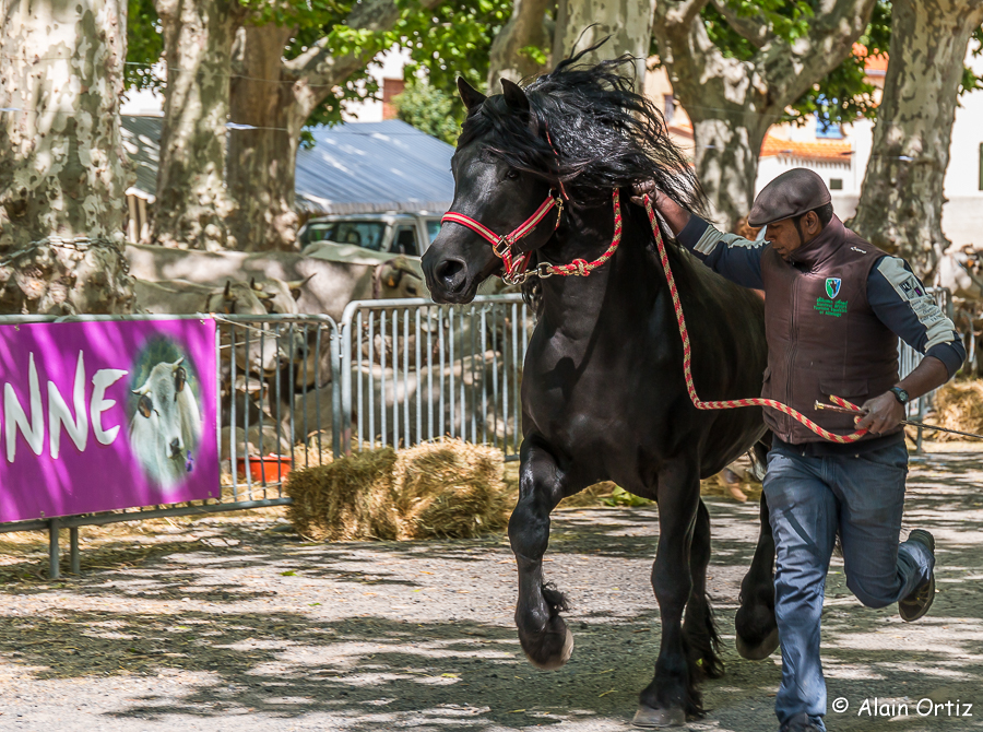 Présentation d’un étalon de race Merens :