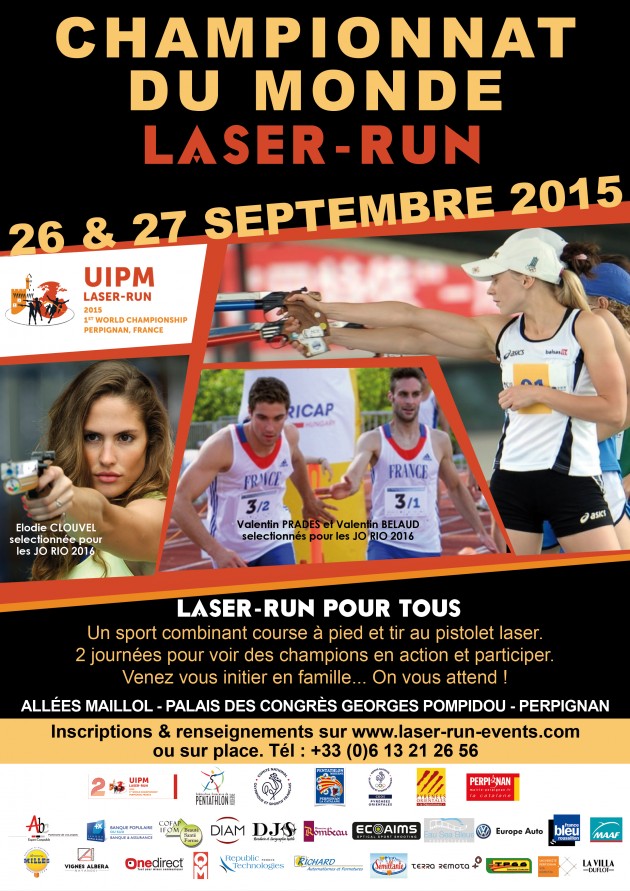 Samedi 26 et dimanche 27 septembre 2015, en plein cœur de ville, sur les allées Maillol, Perpignan accueille le 1er championnat du monde de Laser-Run organisé par le club de Pentathlon Moderne Perpignan la Catalan en partenariat avec la Ville de Perpignan et le Conseil Départemental des Pyrénées-Orientales, sous l’égide de l’Union Internationale de Pentathlon Moderne (UIPM), de la Fédération Française de Pentathlon Moderne (FFPM) et du Comité départemental de Perpignan.