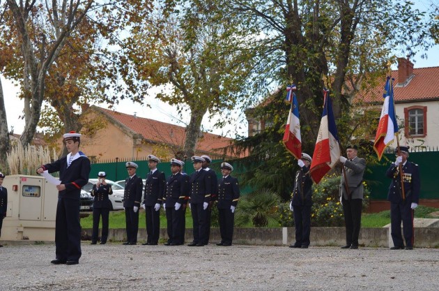 A suivi un hommage/lecture rendu au QM Fort, puis un salut et remerciements aux différentes autorités. Le Commandant F. Paillat a tenu à s’adresser aux 30 stagiaires de la PMM, qui a pour objectif de faire découvrir la marine aux jeunes. Vingt séances de formation (maritime, militaire, aux gestes de premiers secours et permis bateau) ont lieu les samedis après-midi, ainsi que cinq jours de suivi sur un bâtiment ou dans une unité de la marine nationale à Toulon.