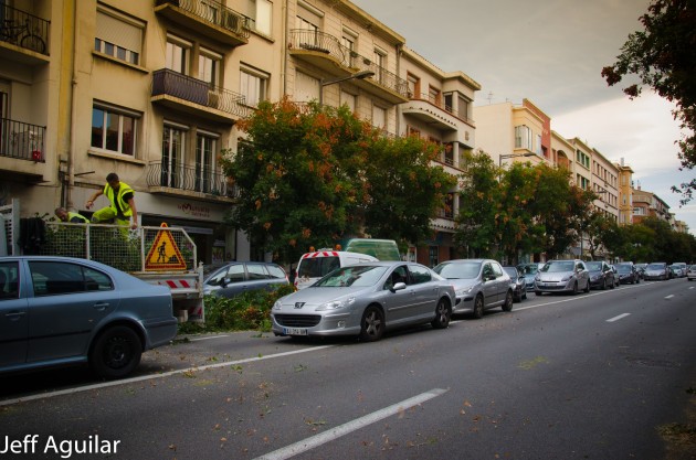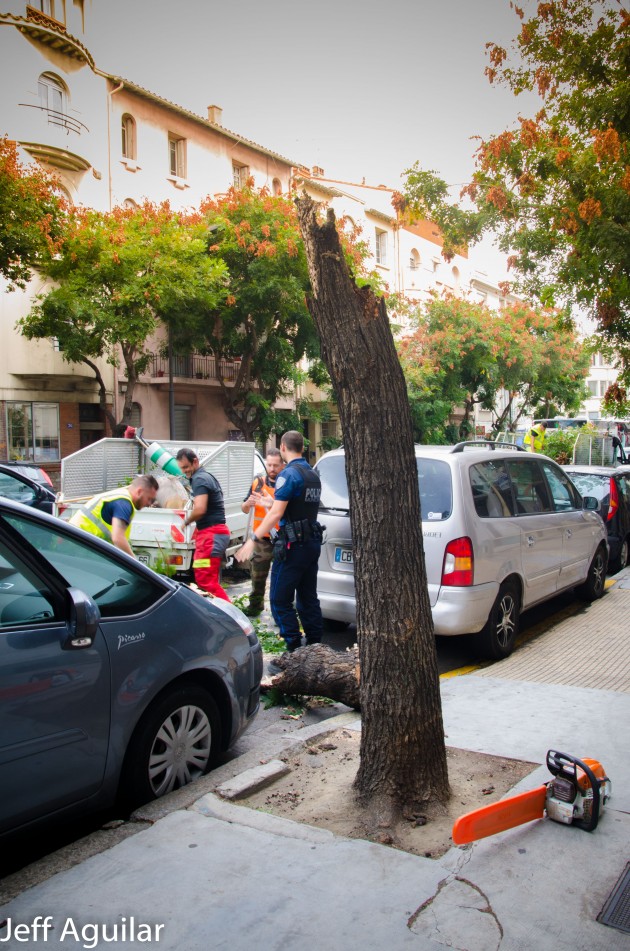 C’est la chute d’un arbre sur la voie publique. Les services techniques de la mairie ainsi que la police municipale interviennent rapidement pour dégager le boulevard Mercader (épine dorsale de la circulation perpignanaise).