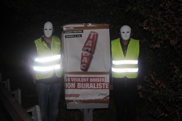 Dans la nuit de jeudi à vendredi 17 radars (sur les 20 que compte le département) ont été recouverts par des affichettes rappelant la crise que traverse les buralistes français.