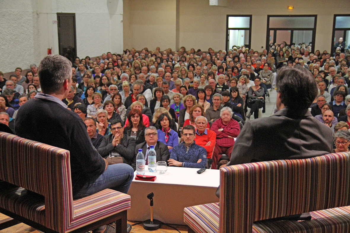 700 personnes étaient réunies pour rencontrer cette nouvelle personnalité invitée dans le cadre des « Rendez-vous de la Connaissance », cycle de conférences organisé par la municipalité en partenariat avec le Centre Méditerranéen de Littérature (CML), France Bleu Roussillon et la librairie CAJELICE de Perpignan. Accueilli par Mme Véronique Olier, 1ère Adjointe et André Bonet, Président du CML, Stéphane Allixa débuté sa présentation sous la forme d’une discussion animée par Jean-Jacques Bedu, auteur et membre du CML.